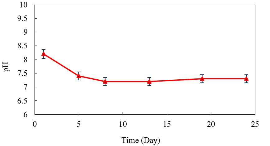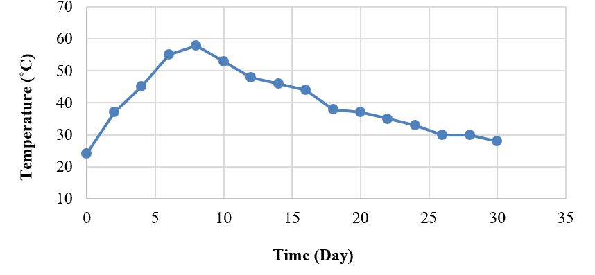 - C/N adjustment: Achieved in the range of 20–30 by adding sawdust 27.