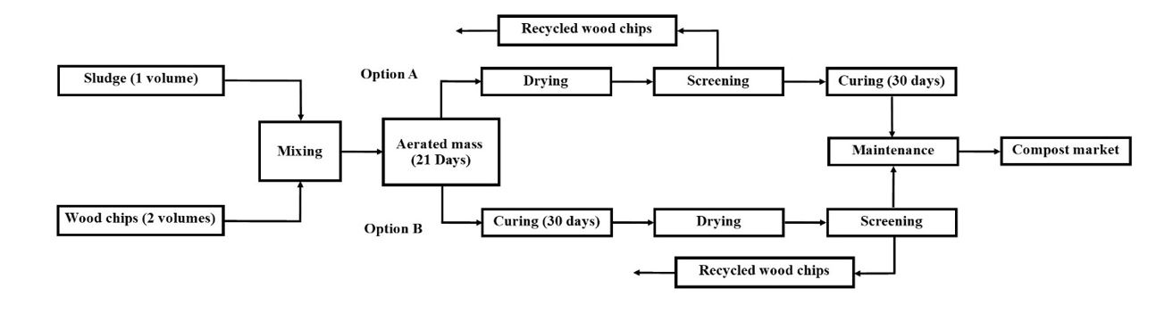In the composting phase, dewatered and chemically conditioned primary and secondary sludges served as the base feedstock. Preparation involved: